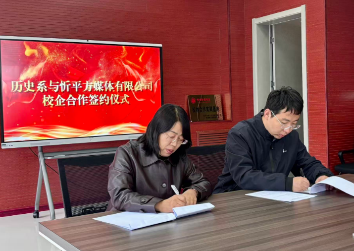 为深化校企合作,促进资源共享与优势互补,推动人才培养与地方产业发展同频共振,历史系与忻平方传媒有限公司于2025年10月11日举行校企合作实践基地挂牌仪式。双方代表围绕专业人才培养、新媒体运营等领域的合作展开交流。